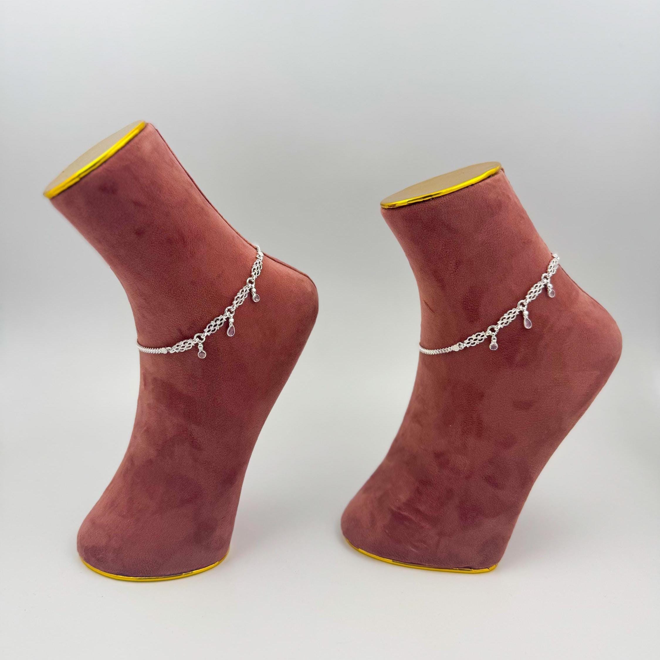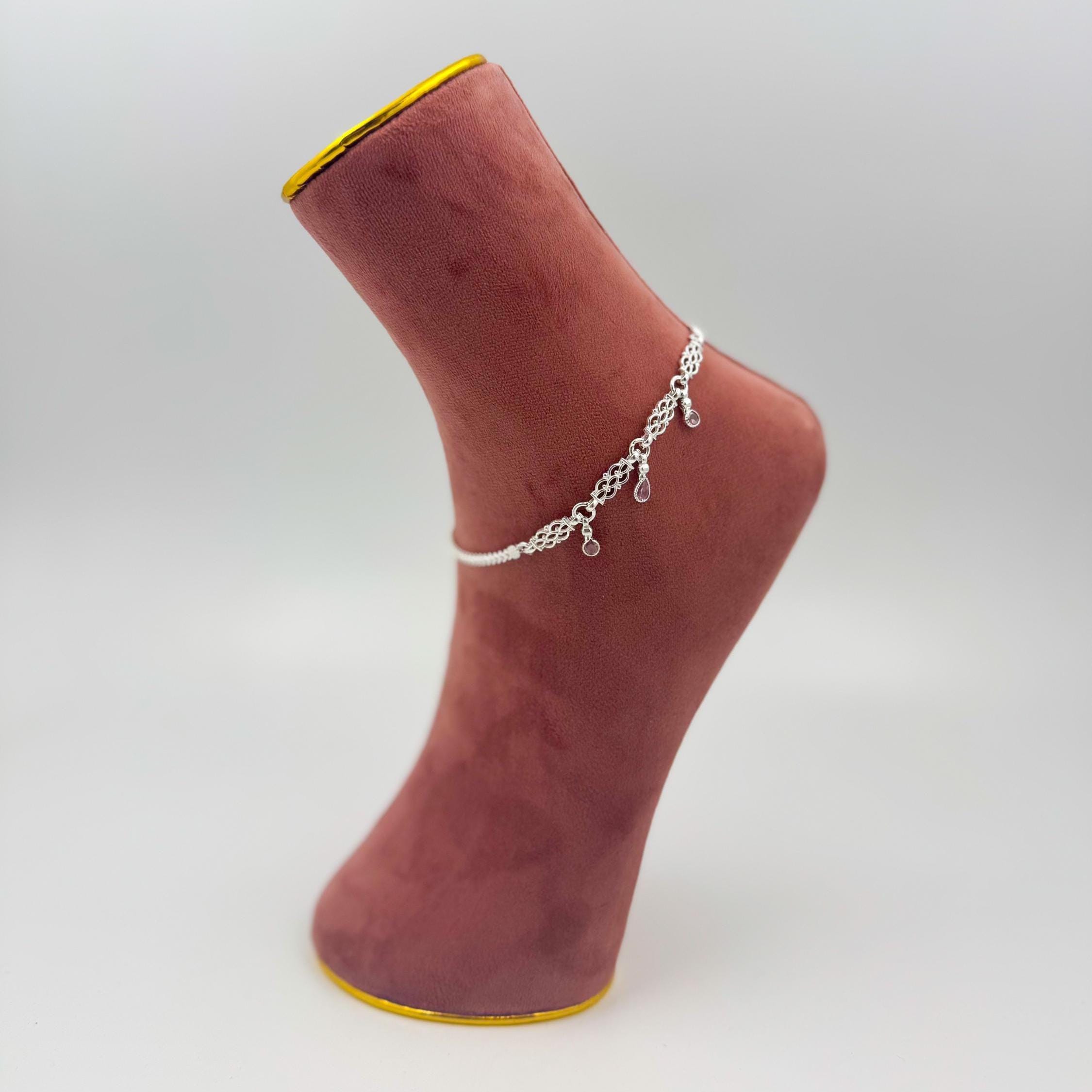 Silver Anklet – Elegant Foot Jewelry with Dangling Charms, Handmade Sterling Silver Anklet for Women, Boho Minimalist Ankle Bracelet Gift