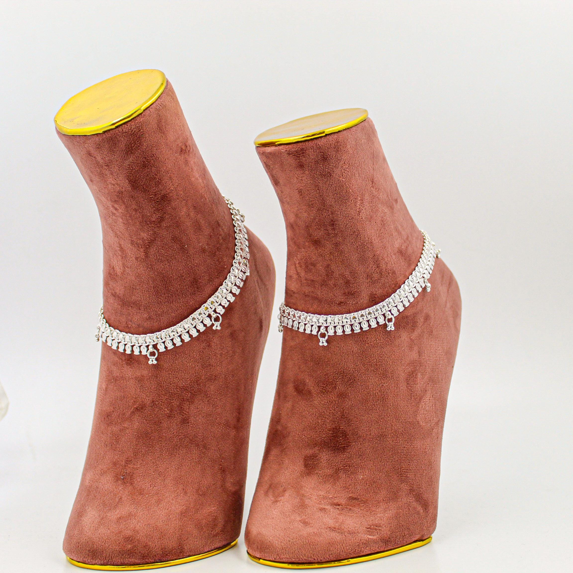 Traditional Indian Silver Anklet Set, Handmade Payal (Women’s Size)