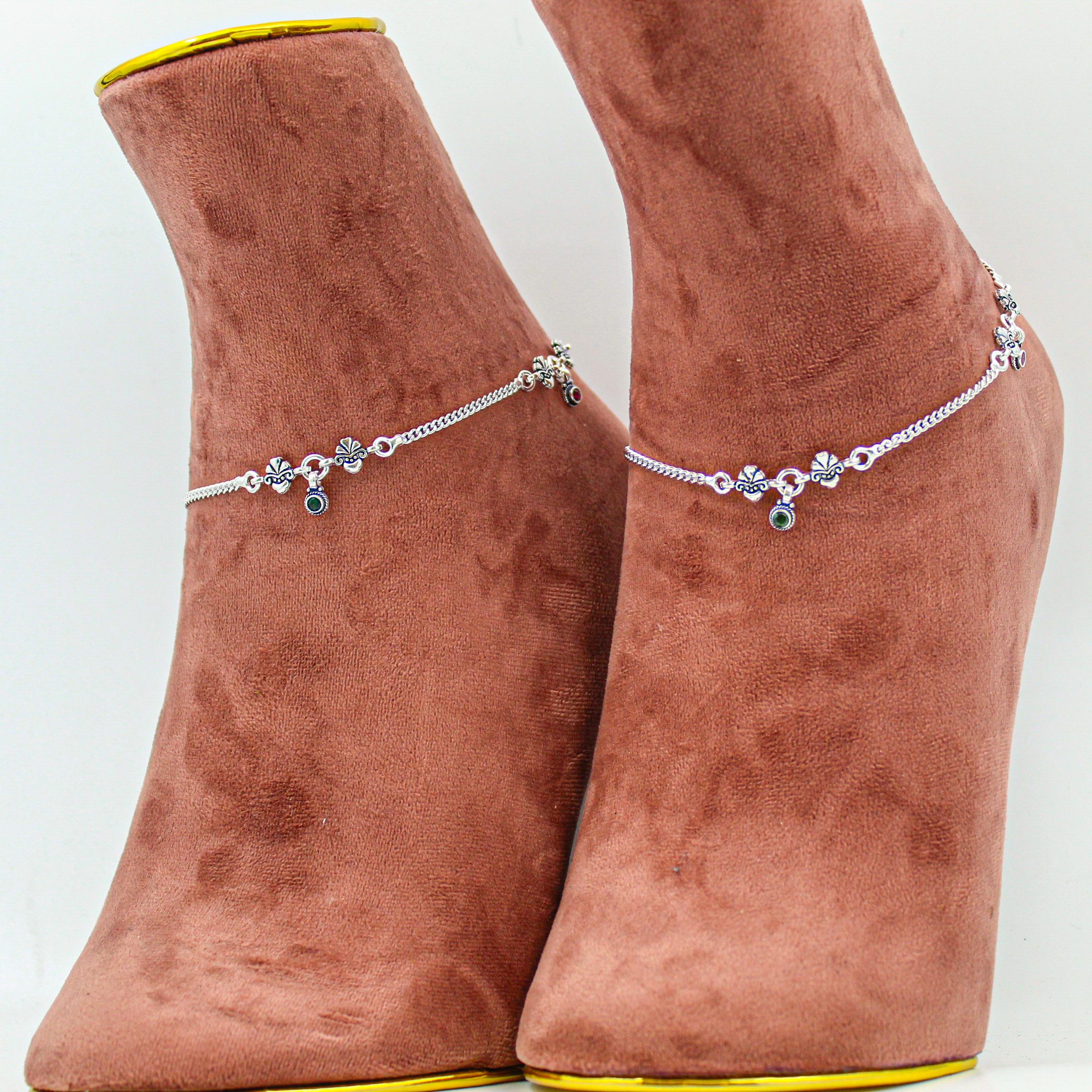 Discover the timeless charm of our handmade silver anklet set, a beautiful blend of tradition and style inspired by classic Indian craftsmanship. This ethnic foot bracelet captures the essence of cultural elegance, perfect for those who appreciate authentic silver payal jewelry. Whether worn as a boho silver anklet for casual days or as a tribal silver anklet to elevate festive attire, it’s designed to celebrate your unique style.