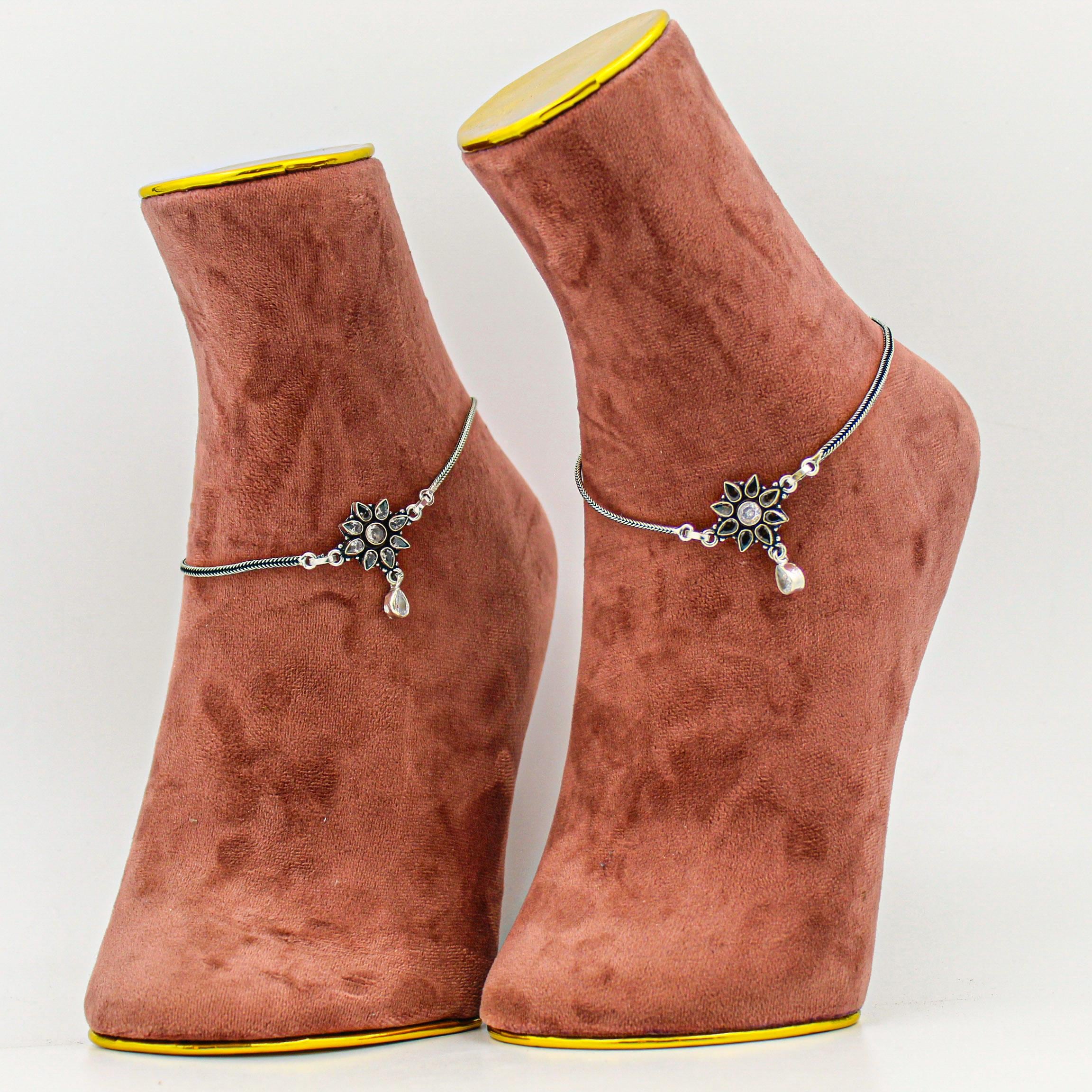 Discover the allure of authentic craftsmanship with this exquisite silver anklet set, blending ethnic foot bracelet charm and boho silver anklet elegance into one timeless accessory. Inspired by traditional Indian artistry, each piece is meticulously handmade to celebrate both heritage and contemporary style. Whether worn as a unique handmade gift or a statement piece for yourself, this anklet adds a graceful, tribal silver anklet touch that complements any look.