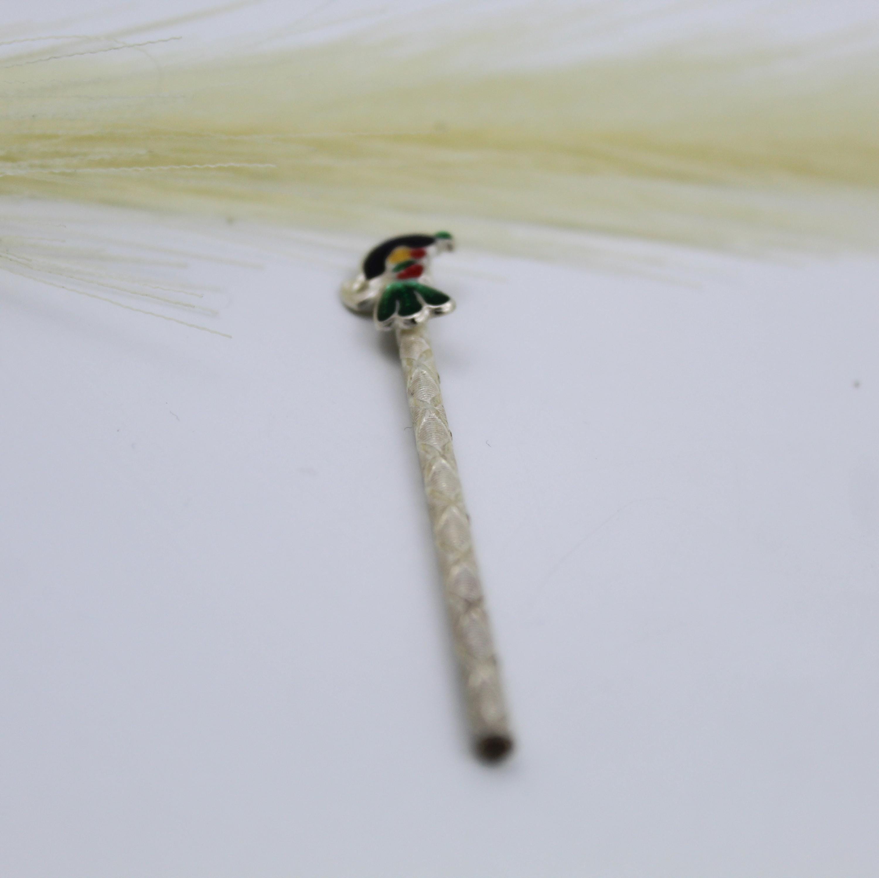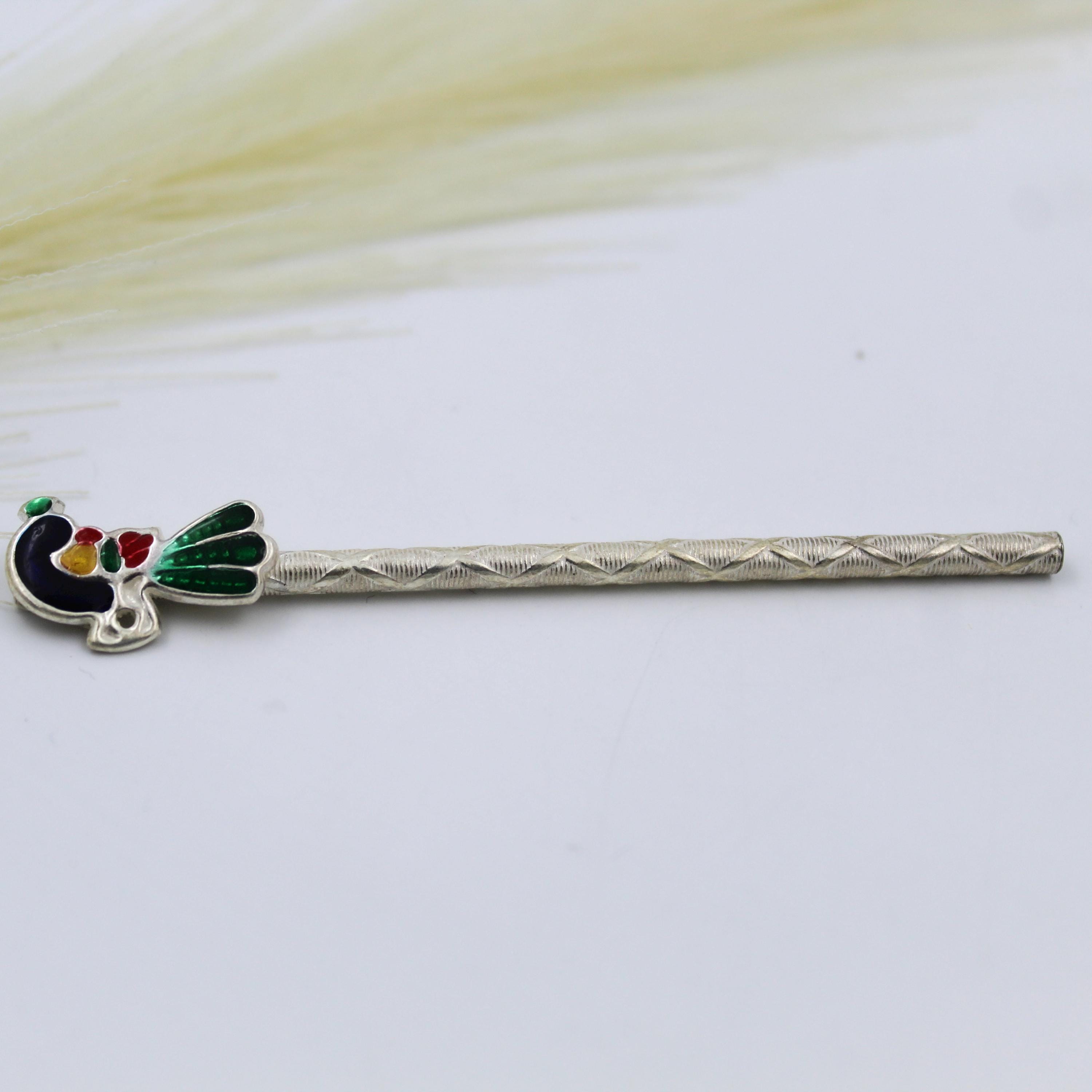 Elevate your hairstyle with this exquisite peacock hair accessory, a true celebration of ethnic artistry and timeless elegance. Handcrafted from sterling silver and adorned with vibrant Meenakari colors, this piece captures the rich heritage of Indian craftsmanship. Whether worn for weddings, festivals, or everyday charm, it brings a unique and colorful touch to any look.
