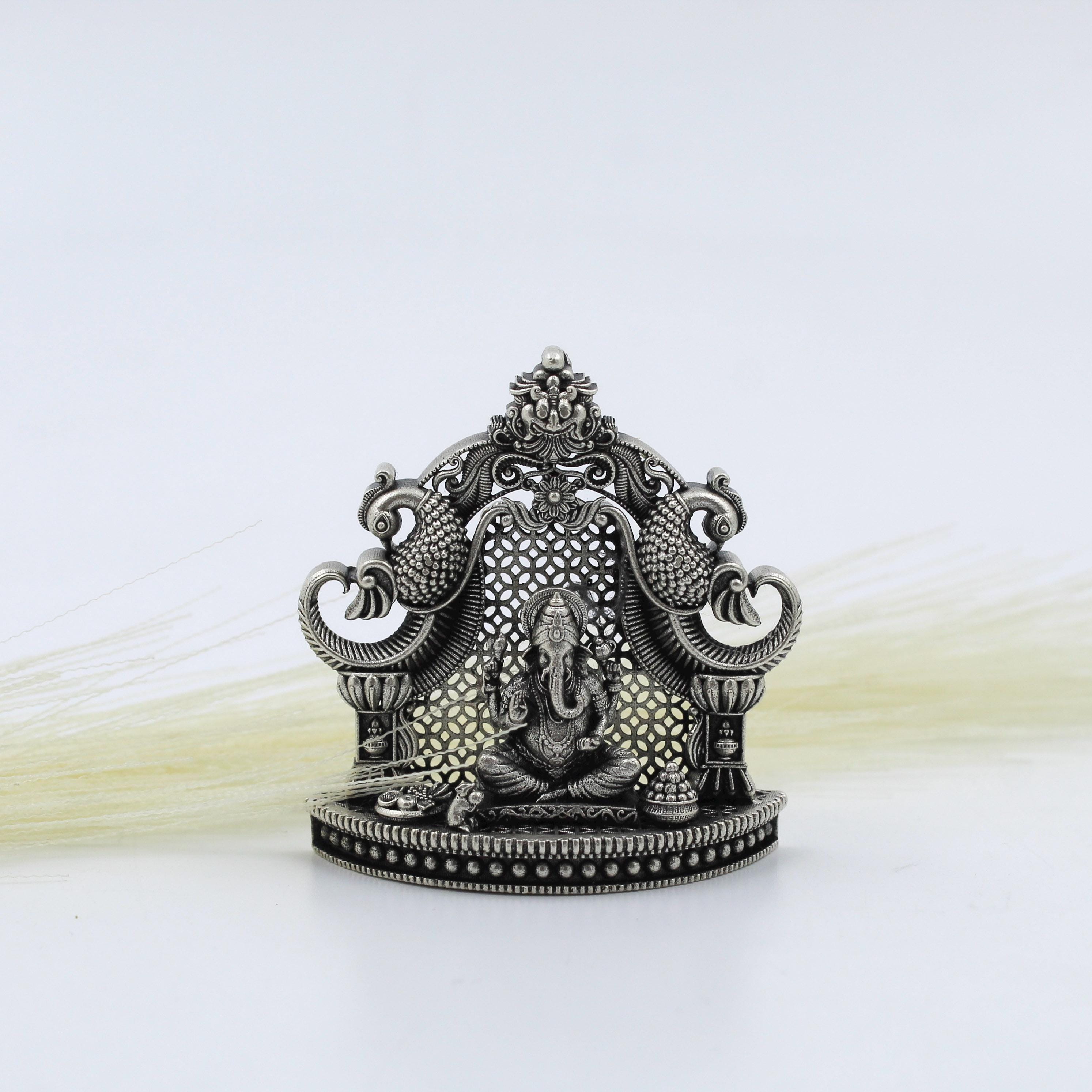 Antique Silver Ganesha Idol: Handcrafted Lord Ganesh Figurine