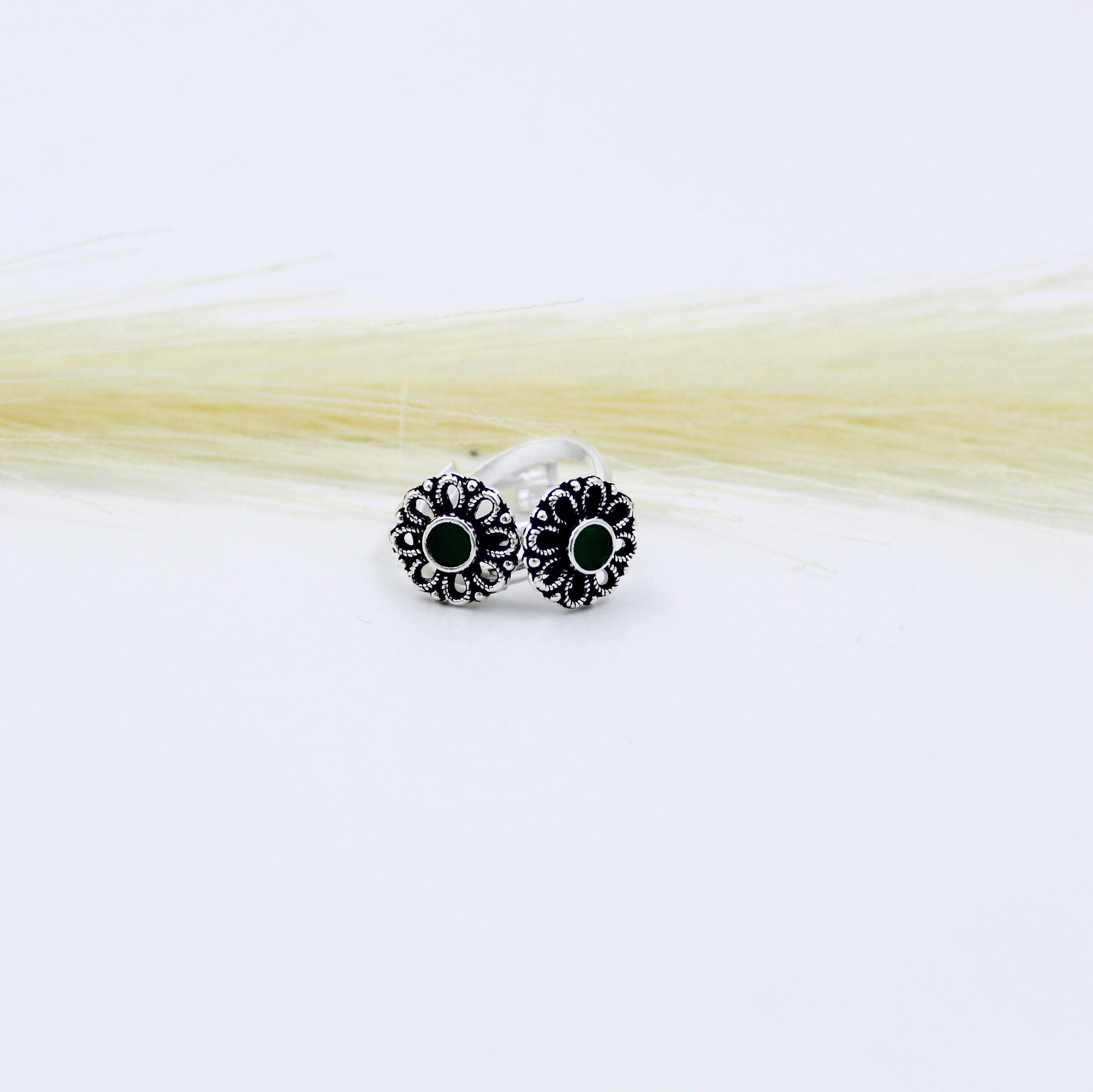 - Crafted with durable silver featuring an antique oxidized finish for a vintage appeal