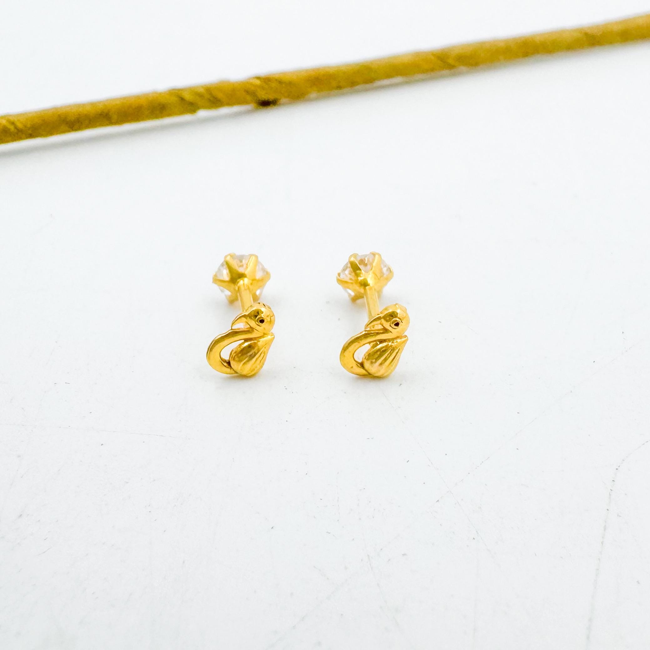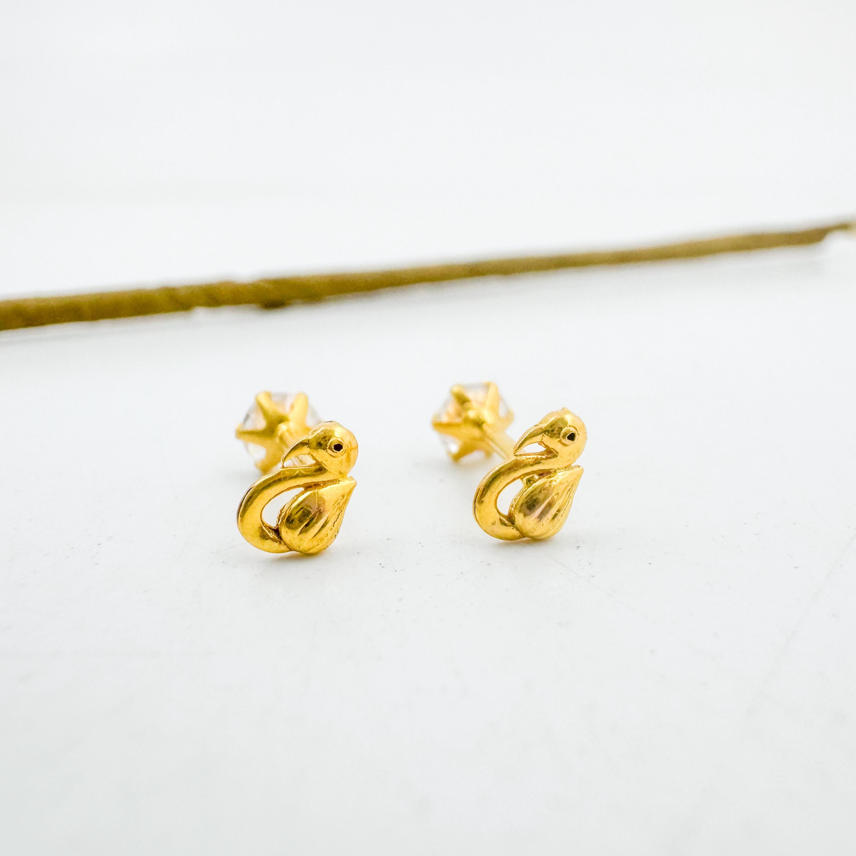 Discover the understated charm of these 14K gold stud earrings, where minimalist design meets timeless elegance. This versatile set features a graceful swan motif alongside a classic solitaire stud, perfect for those who appreciate subtle luxury and refined style. Whether for everyday wear or special occasions, these earrings bring a delicate touch of sophistication to any outfit.
