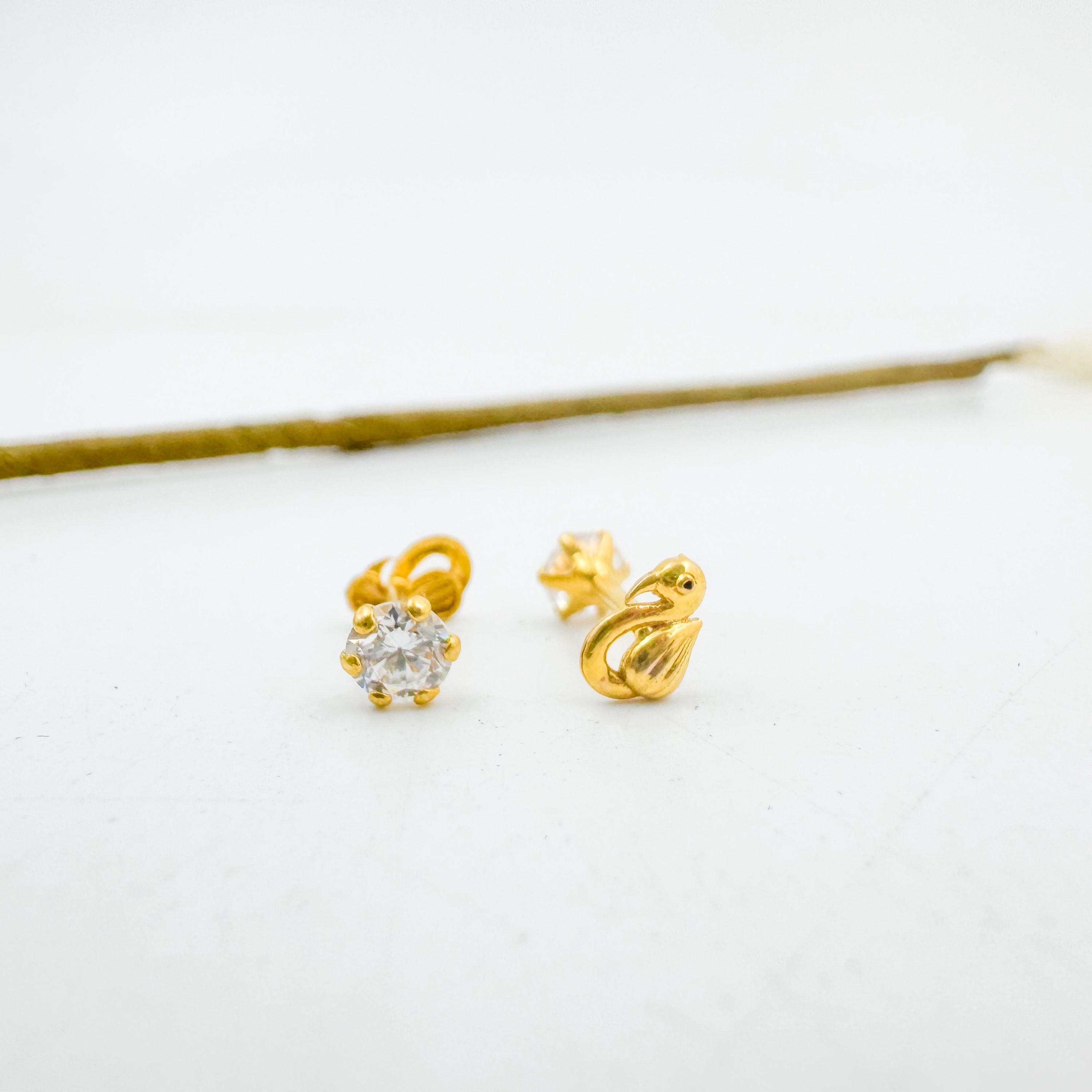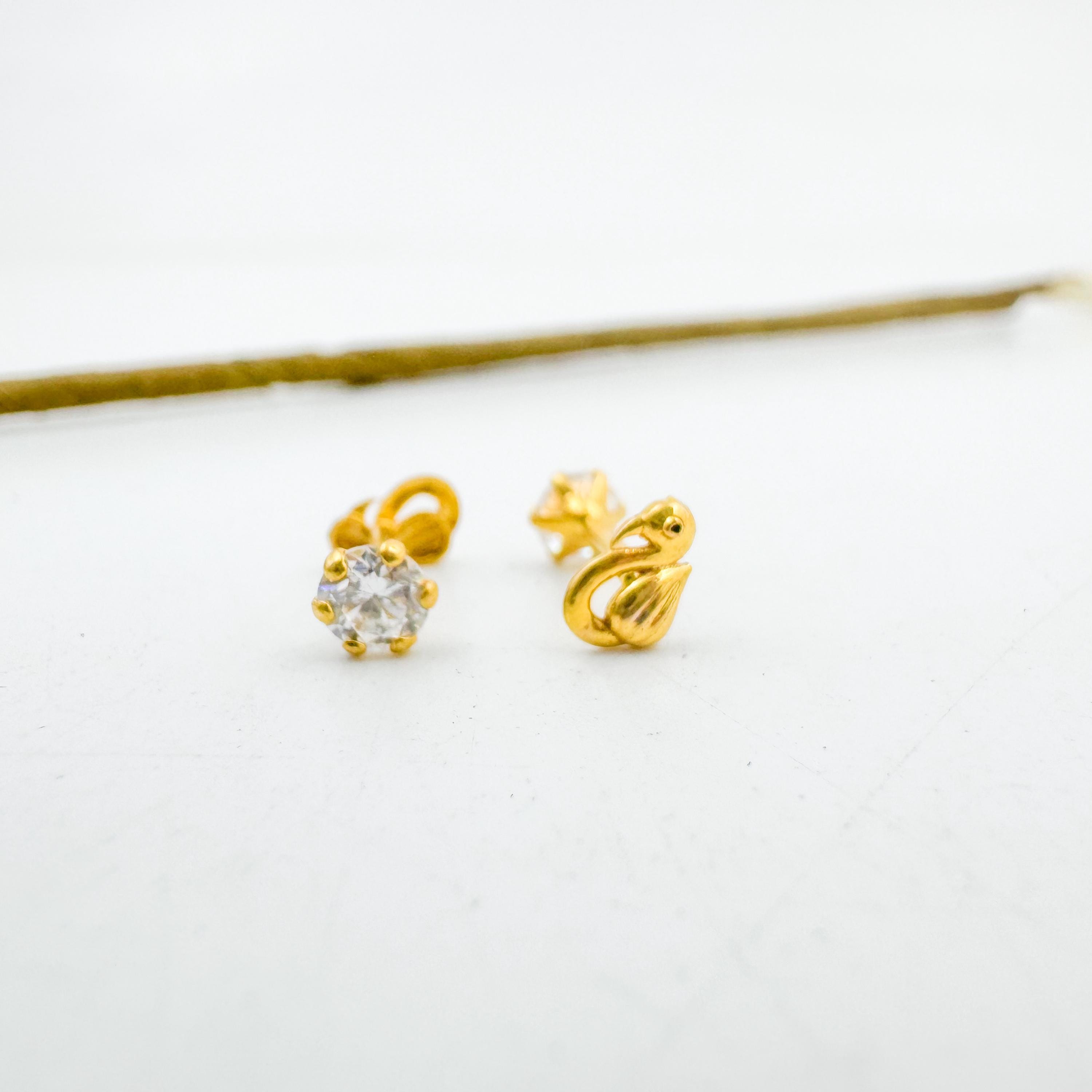 - Includes two distinct styles: a swan-shaped stud and a classic solitaire stud