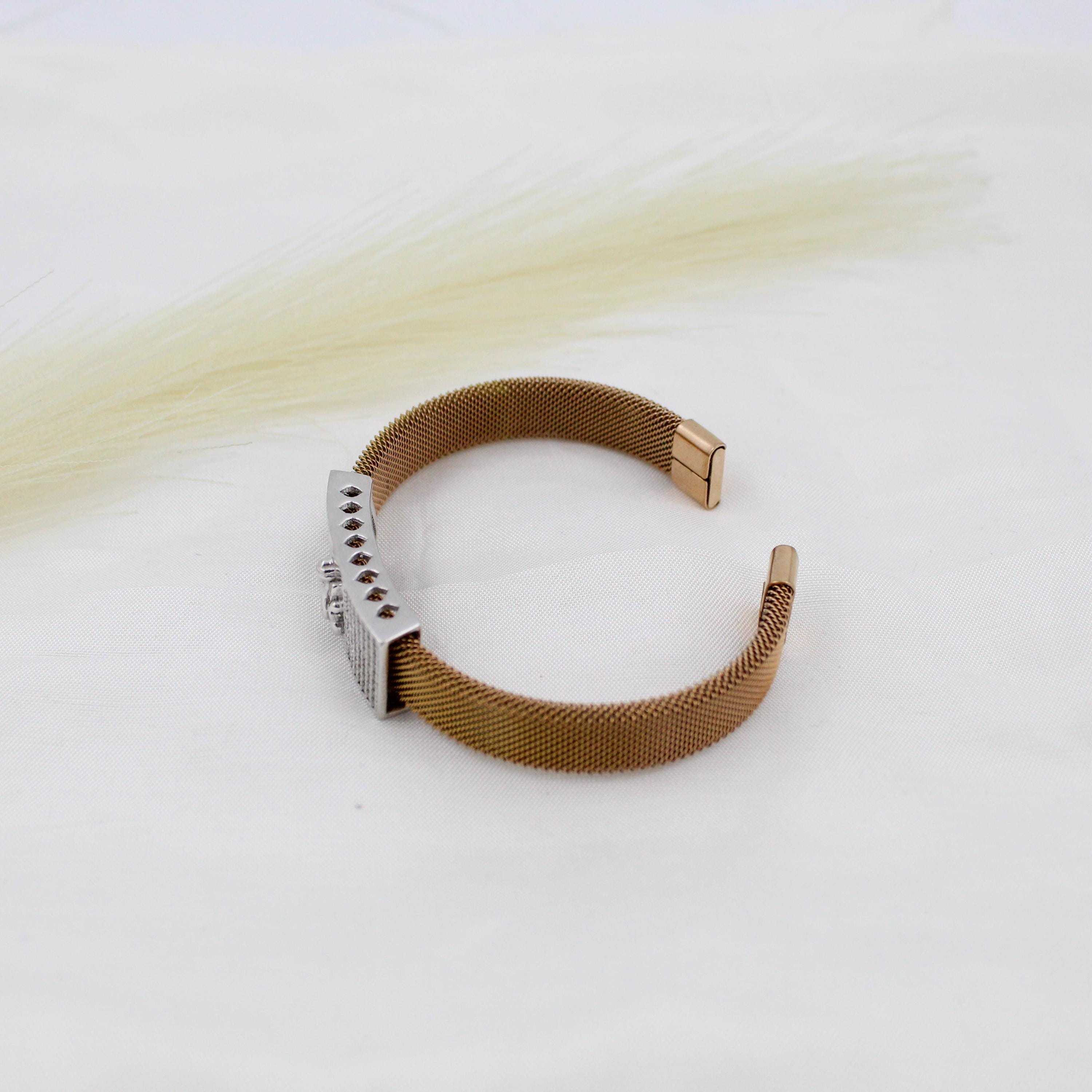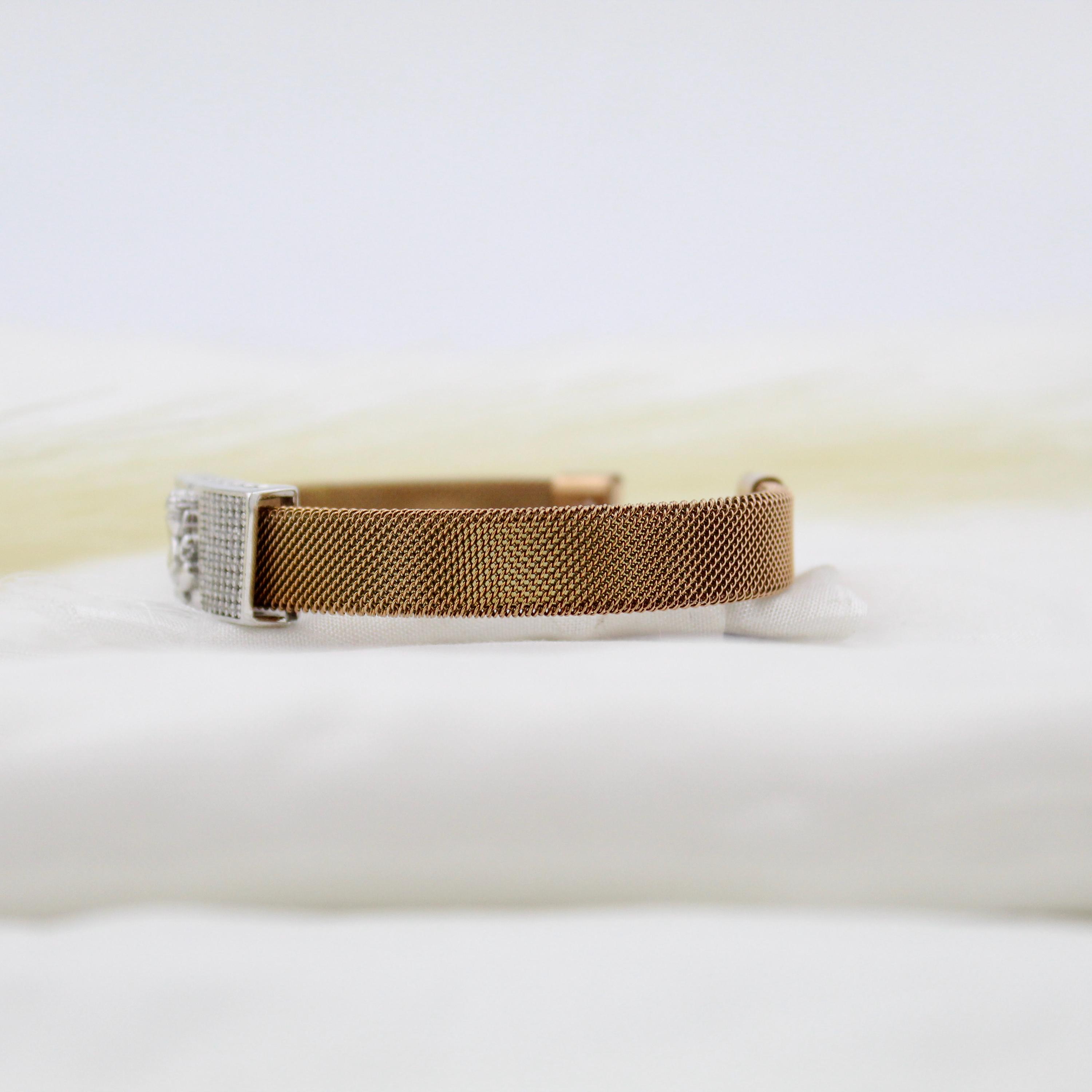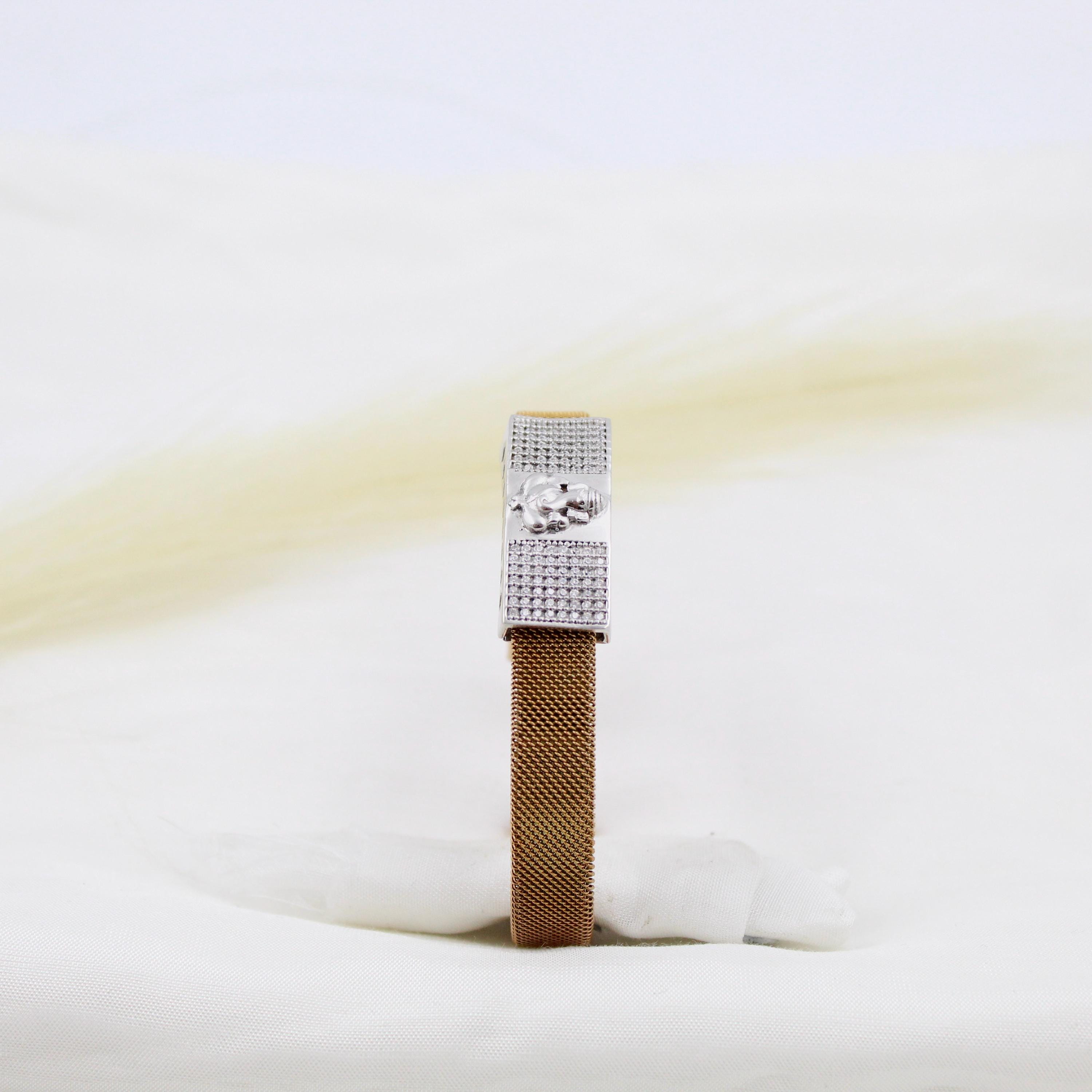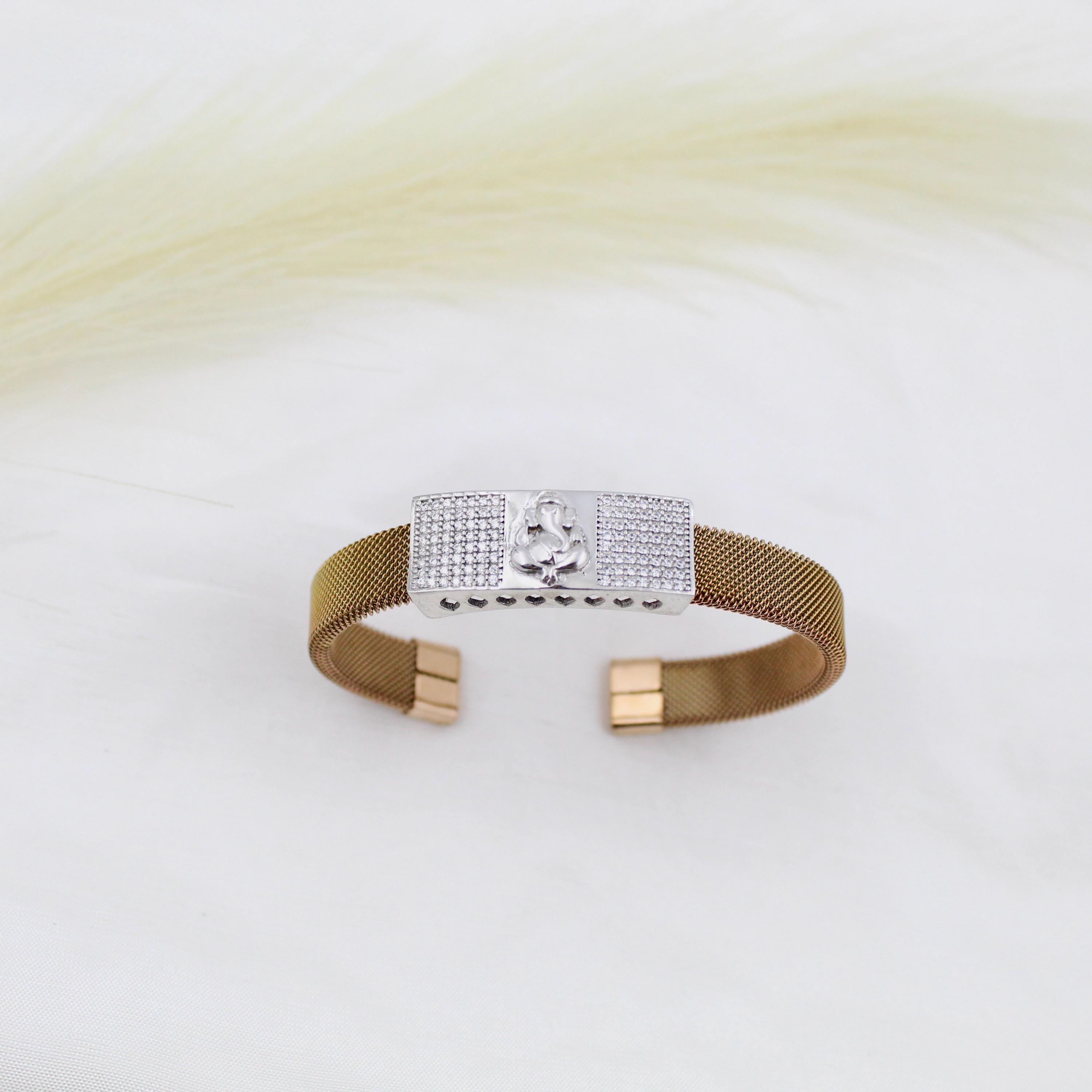 Discover a meaningful accessory that blends spirituality with style in this adjustable gold mesh bracelet, thoughtfully designed as a gift for men. Inspired by the revered Hindu god Ganesha, this bracelet features a sterling silver charm accented with sparkling crystal CZ stones, making it a perfect choice for occasions like Diwali or Raksha Bandhan. Whether you're searching for a men's spiritual gift or a unique piece to elevate everyday wear, this gold mesh bracelet offers both elegance and significance.