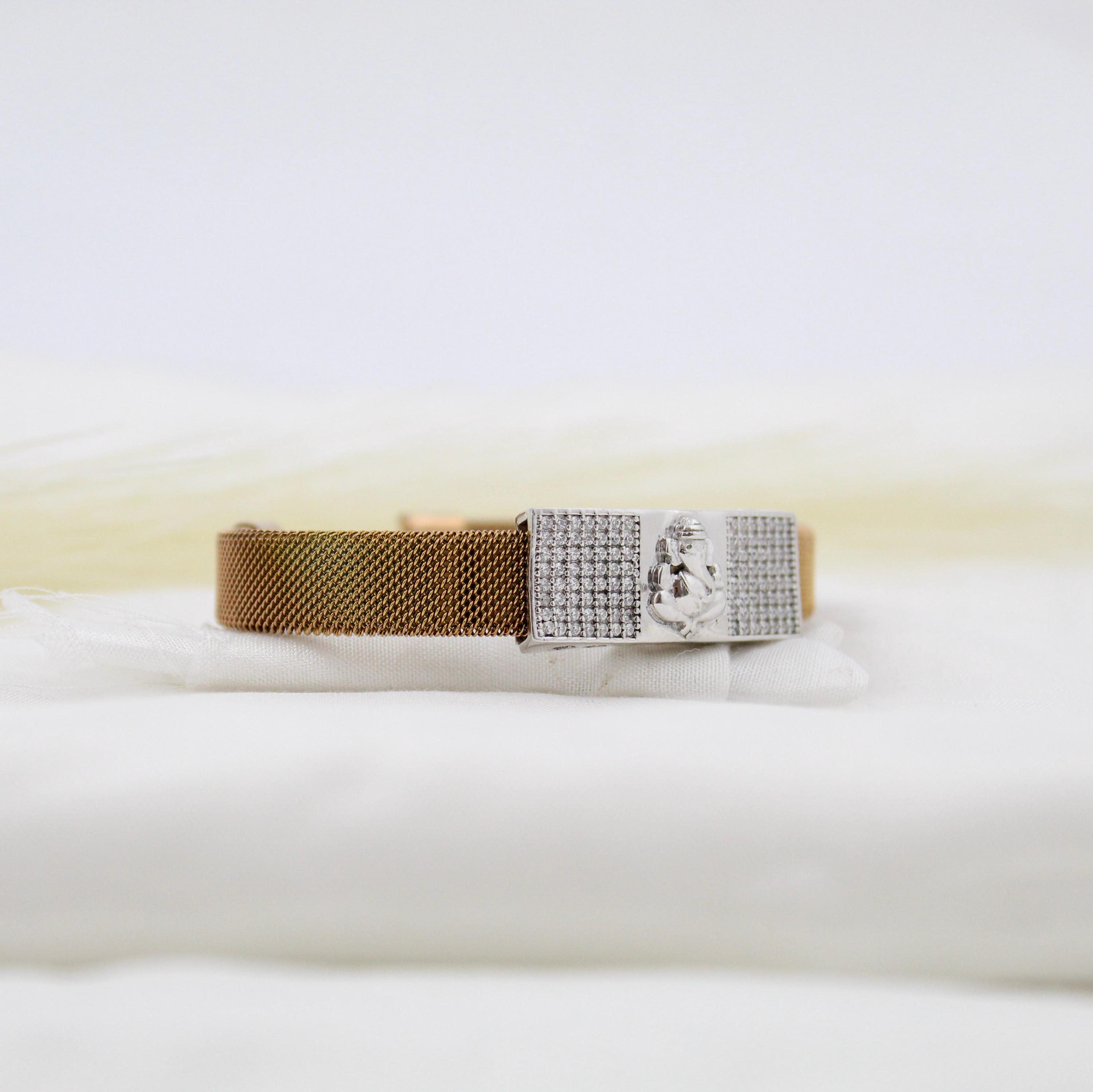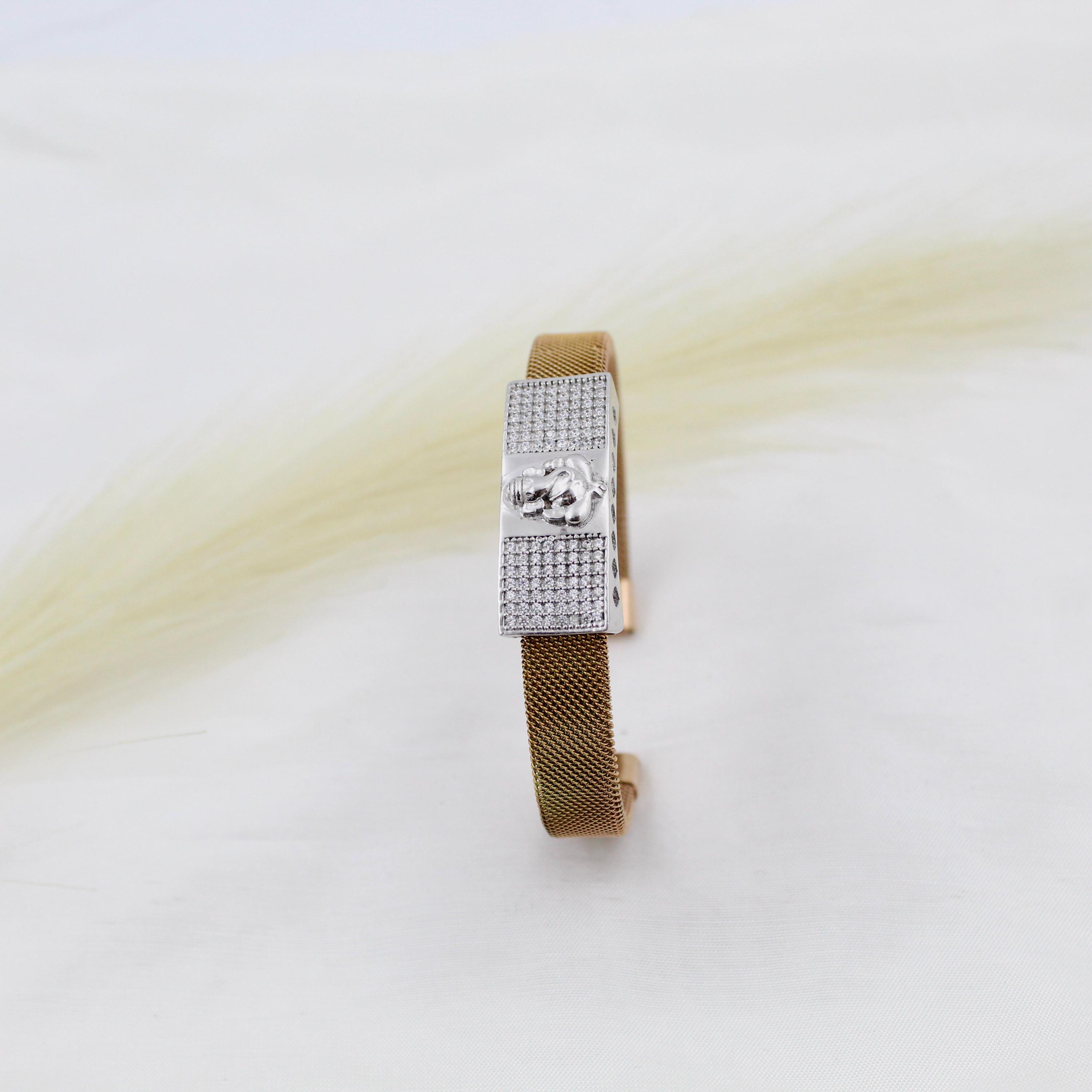 Lord Ganesha Charm Bracelet - Gold Mesh with Crystal CZ Accent